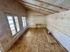 Дом построен в 2023 году (предполагался гостевым или баня) из клееного бруса на железобетонно свайном фундаменте.