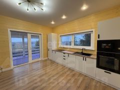 Дом каркасный, фундамент и сваи — железобетон, утеплитель 200 мм от Технониколь, поставлены стеклопакеты 70 мм, в доме три спальни, укомплектованная кухня, гостиная, гардеробная, а также бойлерная и 2 санузла, веранда для уютных теплых вечеров, все коммуникации уже подведены: электричество мощностью 30 кВт, газ проведен по границе участка, теплые пoлы, скважина и септик, оптоволоконный кабель.