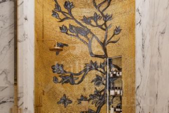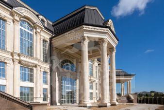 Фасад основного здания выполнен из песчаника и травертина. Фасад террас основного здания выполнен из гранита.