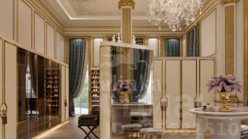 Цоколь: гараж с мойкой, тренажерный зал, комната отдыха, массажная комната, постирочная, хамам, сауна, русская баня, соляная комната, холодное помещение для хранения, бассейн (3 чаши для купания: основная чаша (габаритные размеры 26,3х8,3 м), чаша-джакузи, детская чаша), винный погреб с баром, дегустационный зал, семь санузлов, мужская и женская гардеробные, сейфовая комната, кладовые помещения для хранения.