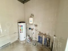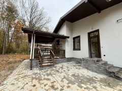 Конструктивные особенности дома включают несущие стены из пеноблока с наружным утеплением и отделкой камнем, кровлю из металлочерепицы с усиленным утеплением, внутренние кирпичные перегородки для звукоизоляции и монолитное плитное основание с системой водяного теплого пола. Установлены энергоэффективные окна VEKO и входная дверь с терморазрывом, минимизирующие теплопотери. Инженерные системы продуманы детально: электрическая разводка выполнена кабелем ВВГнг-ЛС с автоматикой ABB, смонтирована инсталляция Geberit для скрытой сантехники, предусмотрены выводы для уличного освещения, генератора, зарядки электромобиля, интернета и полива на участке. На территории выполнена бетонная отмостка, дренаж и ливневая канализация с накоплением воды для полива, оборудованы мощёные площадки, парковка, монолитные ступени и ограждение по периметру. Просторная терраса с полом из лиственницы и дощатым потолком дополняет благоустройство. Объект полностью готов к заселению и сочетает конструктивную надежность, энергоэффективность и продуманную инфраструктуру для комфортного проживания.