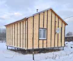 Дом установлен на надёжном свайно-винтовом фундаменте, утеплён для зимы (пеноплекс).