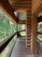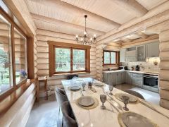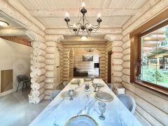 Продается теплый бревенчатый дом по авторскому проекту из архангельской сосны для круглогодичного проживания.