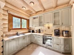 - большая гостиная со вторым светом (панорамным окном), финским камином, изготовленным на заказ из изразцов, тв-зона с 55 смарт-телевизором, зона столовой с 10 посадочными местами, кухонная зона, кухонный гарнитур со всей необходимой встраиваемой бытовой техникой