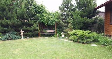 Участок 20 соток, на котором расположены баня, хоз. помещения, фруктовый сад с плодоносящими деревьями и кустарниками, детская площадка, теплицы, грядки, хвойные и лиственные деревья и кустарники, розы и разнообразные цветы.