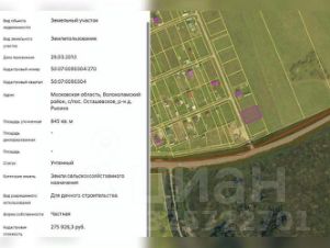 Имущество реализуется путем проведения торгов в форме аукциона в соответствии с Федеральным законом "О несостоятельности (банкротстве) " от 26.10.2002 127-ФЗ. Земельный участокплощадь 845 +/- 20 кв. мкатегория земель: земли сельскохозяйственного назначениявид разрешенного использования: для дачного строительствакадастровый номер 50: 07: 0090304: 270месторасположение Московская область, Волоколамский район, с/пос. Осташевское, р-н д. РысихаПрием заявок будет осуществляться на сторонней электронной торговой площадке, задаток 10%. Помощь от Сбербанка - Агентский сервис по участию на торгах. Агент за Вас оформит документы, подаст заявку и примет участие на торгах. Специалисты Банка сопровождают процедуру участия в торгах "под ключ": - регистрация на ЭТП;- подача заявки;- торги;- сопровождение сделки купли-продажи.