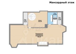 Третий этаж: мансарда (100 метров свободной планировки) с санузлом, зона отдыха с диваном;