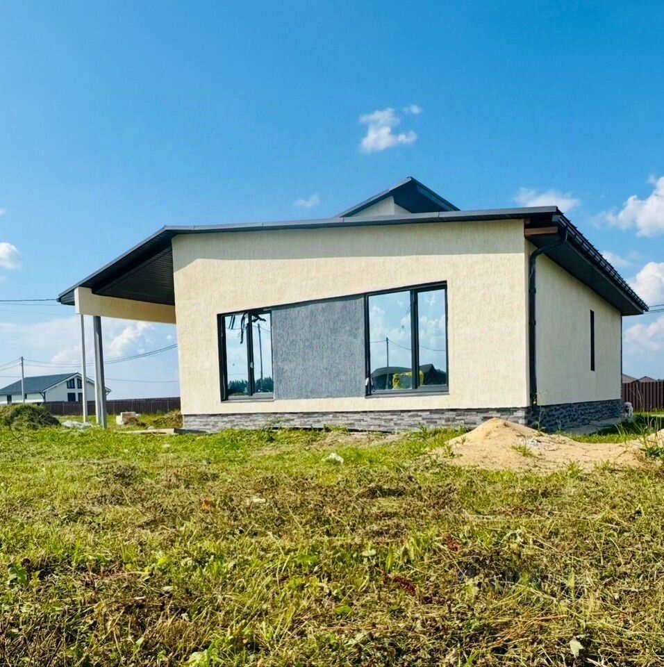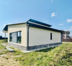Дом стоит на ленточном фундаменте с утепленной подушкой, стены из газоблока с утеплением из минваты, кровля покрыта клик-фальцем, фасад покрыт декоративной штукатуркой (короед) и декоративный камнем. Внутри стены оштукатурены. Окна Меlkе профиль 70мм, цвет антрацит , стекла с напылением silvеr, установлена качественная входная дверь с терморазрывом.