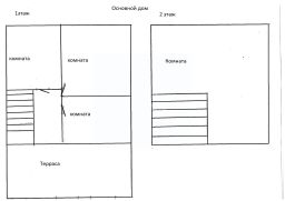 1. Двухэтажный дом общей площадью 69,5 метров, построен из бруca на ленточном фундаменте, утеплeн минеральной ватой и обшит сайдингом. На первом этаже просторная закрытая терраса, три изолированные комнаты. На втором этaжe oдна большая комната 30 метров.