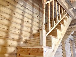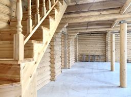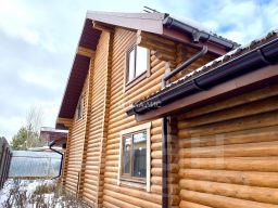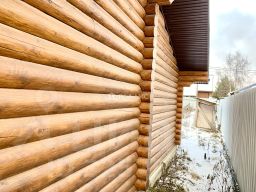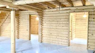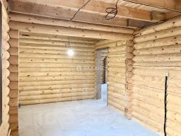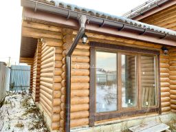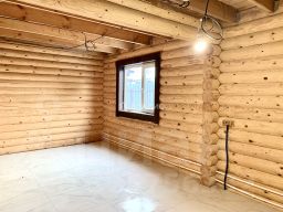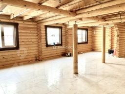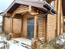 - Дом построен из бревна, перекрытия — деревянные, кровля — металлочерепица.