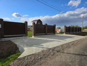 Надел земли прямоугольной формы фасадом длиной 67,3 м и глубиной 55 м огорожен надёжным забором. Здесь есть 2 проёма для ворот авто и две бетонированные парковки, на 4-е и 2 авто соответственно. Фасадом домовладение обращено на северо-восток.