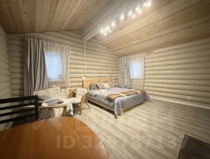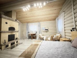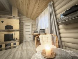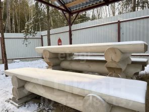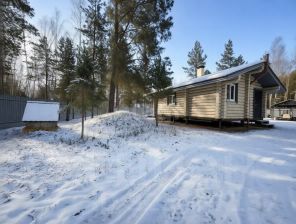 - Построен из оцилиндрованного бревна карельской сосны, привезённого из Карелии.