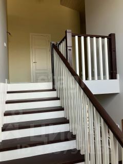 1-й этаж: кухня-гостиная с выходом на веранду, камин, две комнаты, гардеробная, санузел с душем, бойлерная, холл, коридор. Теплые полы в санузлах и прихожей. Кухня оборудована бытовой техникой Neff, сантехника Jacob Delafon. На полу дубовый паркет, лестница монолитная, ступени массив дуба. Кухонная мебель финская, массив берёзы.