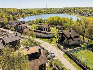 2-й этаж: мастер-спальня с санузлом и гардеробной, детская, санузел с ванной, кабинет, гостевая спальня, просторный холл, два больших балкона, один с видом на озеро, другой на посёлок.