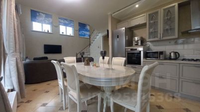 На первом этаже шикарная кухня-гостиная, оборудованная встроенной мебелью, техникой и обеденной группой (стол+стулья), так же на первом этаже небольшая комната, площадью 12 м2, ванная, гардеробная и помещение для для хранения предметов быта, инструментов, хозяйственного инвентаря.