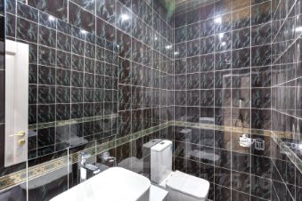 - Цокольный этаж представляет собой свободное пространство для детей, где они могут играть, принимать своих друзей и весело проводить время. Также на этом этаже будет комфортно и любителям бани, поскольку здесь располагается сауна с бассейном. Для хозяйки дома прекрасным бонусом послужит наличие прохладного помещения, где она сможет хранить свои домашние заготовки.