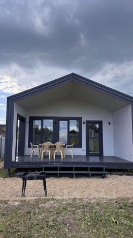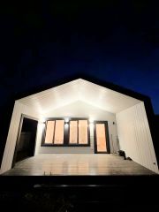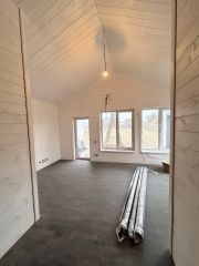 Дом: каркасный дом 6 х 12, из них теплый контур 6 х 9 и терраса под общей крышей 6 х 3. Утепление дом каменная вата 20 см пол, потолок, стены, ветро-влагозащита согласно технологии. Фасады имитация бруса, по бокам металлический Клик Фальц 0,5 мм толщиной, погнуть невозможно. Фундамент Сваи, окна КБЕ 70 профиль 2-ух камерные (3 стекла) на полу залита стяжка по всему дому, электрический теплый пол по всему полу 6 киловатт 6 терморегуляторов на дом. Входная дверь с терморазрывом толщиной 12 см. При входе на полу керамогранит. Санузел на полу керамогранит на стенах плитка под потолок. Полная разводка воды по дому с установкой водяного коллектора на каждую водяную точку. Скрытая разводка воды. Напольное покрытие коммерческий линолеум высокого качества. Стены и потолок вагонка Штиль Сорт АБ покрашена два слоя белой пропиткой. Электрика разведена по дому скрытым способом. Провода Конкорд с тройной изоляцией в гофре выводы под освещения сделаны. Электро-Щиток установлен с раздельными автоматами. Трасса под кондиционер проложена из кухни-гостиной под дом осталось только подключить внешний и внутренний блок.