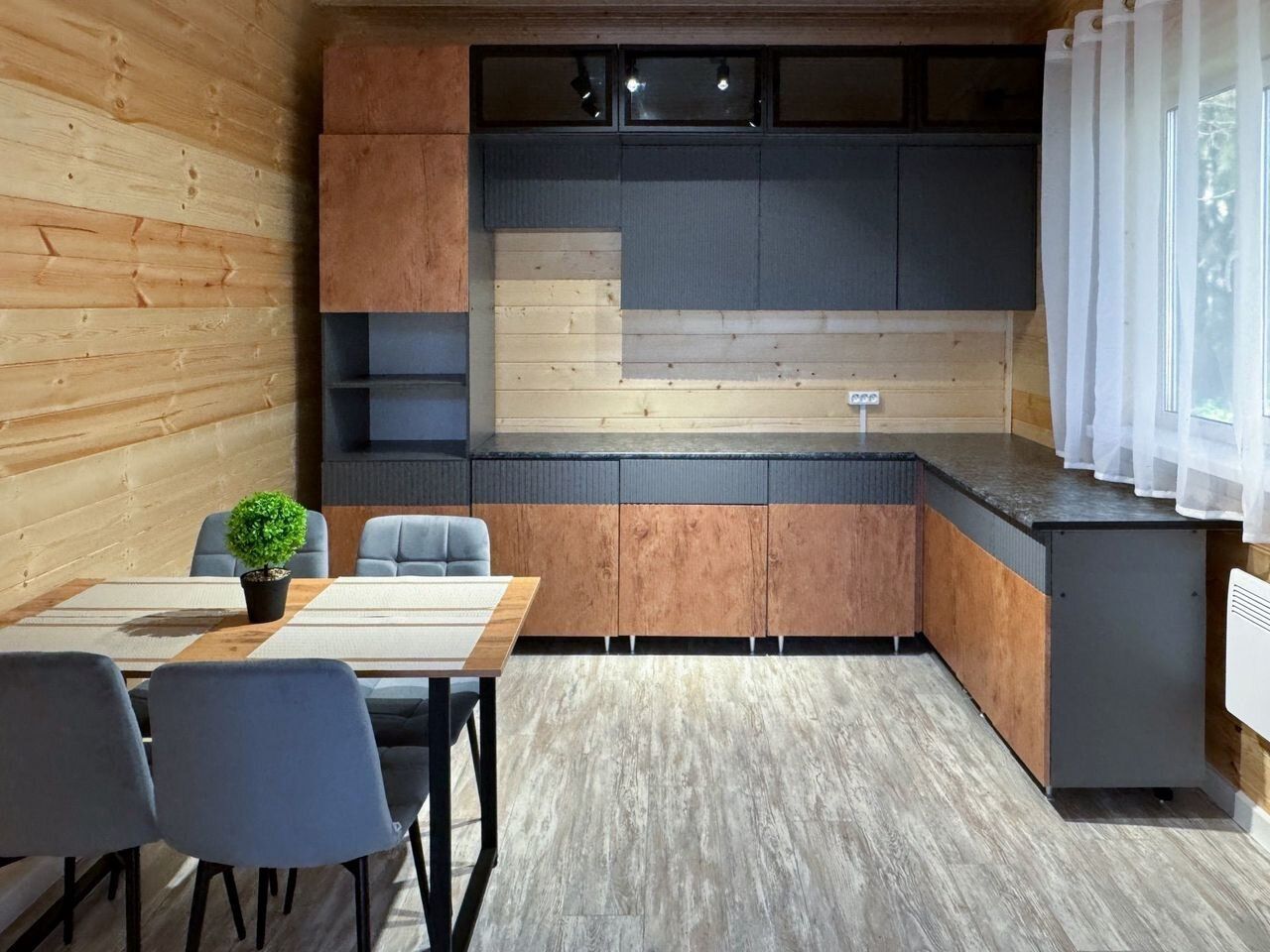 Отделка: имитация бруса. Пол ламинат.