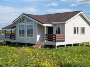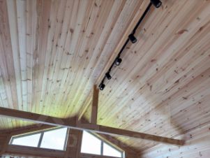 Обшит имитацией бруса, заводская покраска Tikkurila.