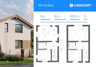 В продаже дом площадью 103,3 м2 на участке 5.1 от застройщика "Самолет" в загородном проекте "Истра Дом".