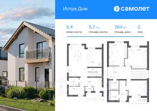 В продаже дом площадью 163,95 м2 на участке 5.66 от застройщика "Самолет" в загородном проекте "Истра Дом".