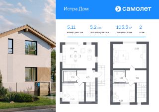 В продаже дом площадью 103,3 м2 на участке 5.22 от застройщика "Самолет" в загородном проекте "Истра Дом".