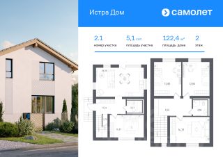 В продаже дом площадью 122,4 м2 на участке 5.1 от застройщика "Самолет" в загородном проекте "Истра Дом".