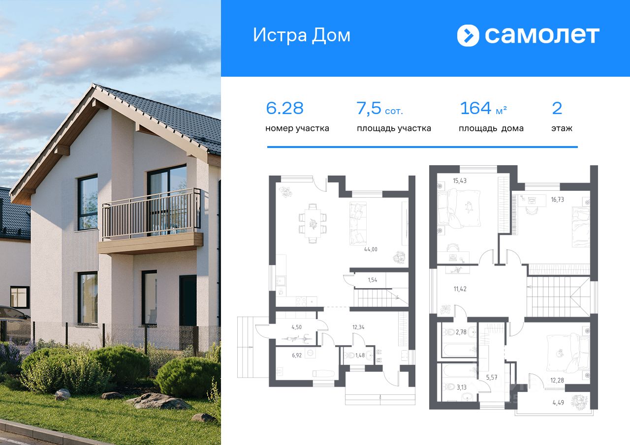 В продаже дом площадью 163,95 м2 на участке 7.46 от застройщика "Самолет" в загородном проекте "Истра Дом".