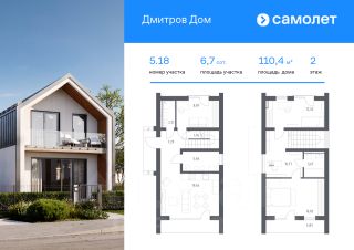 В продаже дом площадью 110,38 м2 на участке 6.68 от застройщика "Самолет" в загородном проекте "Дмитров Дом".