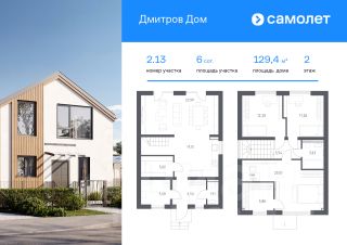 В продаже дом площадью 129,4 м2 на участке 6.0 от застройщика "Самолет" в загородном проекте "Дмитров Дом".