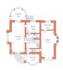 1 этаж - гостиная, столовая, кухня, гараж, котельная,