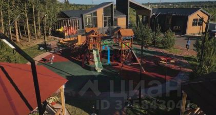 Большая парковая зона внутри поселка, детская площадка с огромной игровой зоной, качелями, батутом и песочницей.