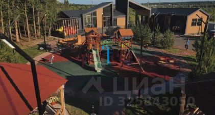 Большая парковая зона внутри поселка, детская площадка с огромной игровой зоной, качелями, батутом и песочницей.