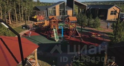 Большая парковая зона внутри поселка, детская площадка с огромной игровой зоной, качелями, батутом и песочницей.