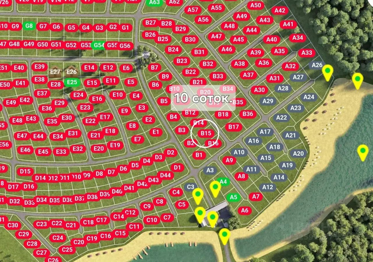 Участок 10 соток, правильной формы, располагается в тихом и очень живописном уголке коттеджного поселка. Все коммуникации по границе участка (газ магистральный, вода центральная, эл-во 15 кВт, интернет проводной). В поселке асфальтированные дороги, построены детские площадки, детский городок, организованы прогулочные тропинки в хвойном лесу, спорт площадка, теннисный корт, футбольная площадка, баскетбольная площадка, пляжный волейбол, благоустроен рыболовный пруд, установлены беседки для барбекю.