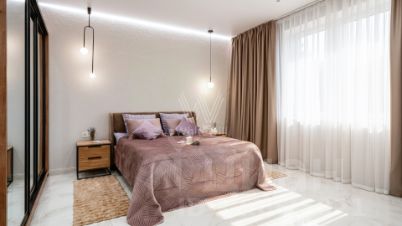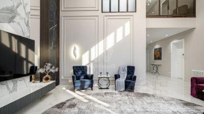 • Второй уровень: холл, мастер-спальня с гардеробной, санузлом и балконом, спальня с гардеробной и санузлом.