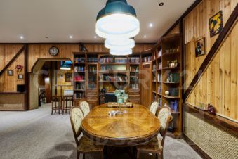 Цокольный этаж включает просторный винный погреб, большую библиотеку с зоной отдыха и санузел.