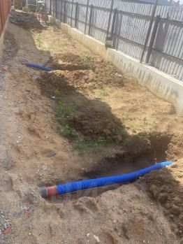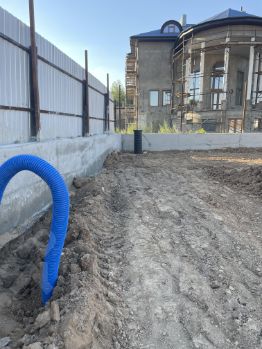 3. Фундамент под забор, а также опорная стена для выравнивания участка по всему периметру.