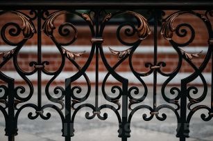 Территория усадьбы огорожена забором высотой 3,5 метра и экранирующими посадками деревьев. Три въезда для владельцев, гостей и персонала.