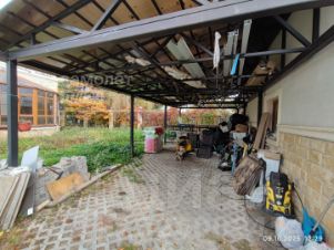 На участке, площадью 14 соток, имеется гостевой дом с гаражом на два автомобиля, с открытой площадкой под навесом.