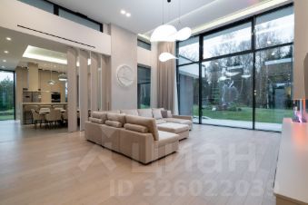 ОКНА И СВЕТ. Панорамное остекление от пола до потолка в алюминиевых профилях с терморазрывом. Высота потолков 3,4 м, а в гостиной — впечатляющие 4,6 м, создающие ощущение простора и свободы.