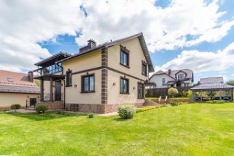 Код объекта в БД Агентства: 340-210. Европейская долина к/п. Современный кирпичный дом под ключ в охраняемом поселке бизнес класса с центральными коммуникациями. Поселок расположен на берегу реки Пахра, граничит с лесом. В доме выполнена качественная отделка. Много спален, одна из которых на первом этаже. Коттедж обставлен мебелью и техникой. На участке ландшафтный дизайн, беседка, гараж на 2 авто. Многоуровневый участок с панорамным видом. В коттеджном поселке есть свой оборудованный пляж с беседками и зоной барбекю. В 10 мин на а/м от поселка престижная школа "Ника".