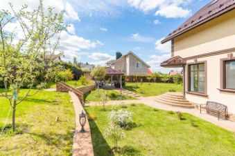 Описание внутренней отделки: выполнена отделка в классическом стиле, в светлых тонах. На стенах итальянские обои. На полу керамогранит производства Испания и ламинат KRONOTEX, теплый пол везде, где керамогранит и плитка. Лестница на монолитном основании отделана цельным буком. Потолки обшиты гипсокартоном, многоуровневые с разными сценариями освещения. Установлена импортная сантехника Roca Group (Испания), унитазы JACOB DELAFON (США). Электрика Legrand, медная проводка. В каждой комнате биометрические радиаторы. Межкомнатные двери Alvero из цельного бука, покрытого эмалью. Массивная входная дверь - двойная. Установлена система обогрева входной зоны, ступенек и верхней площадки, а также со 2 выхода во двор ступенек и верхней площадки..