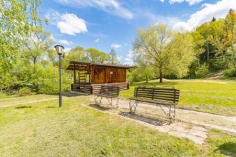 Благоустройство участка: видовой участок с панорамным видом на речку и поселок. Выполнено зонирование участка, ландшафтный дизайн с большими и малыми формами кустарников, а также другими элементами декора. Высажено множество плодовых, хвойных, декоративных деревьев и кустарников, клубника. Высажена живая изгородь из туй. Освещение по всему участку. Зона барбекю. Детская площадка. Беседка. Дренажная система по всему участку с выводом в центральную канализацию..