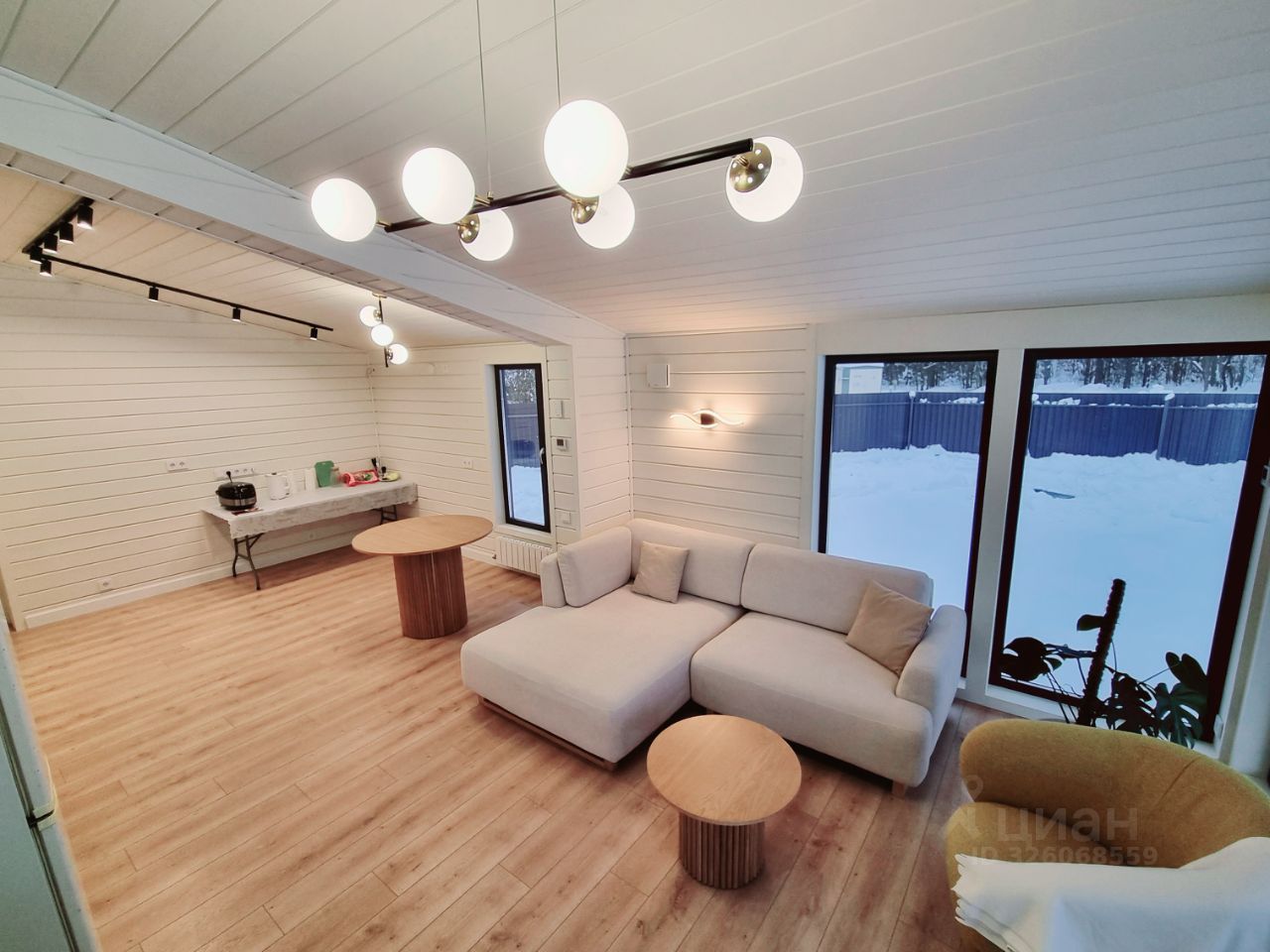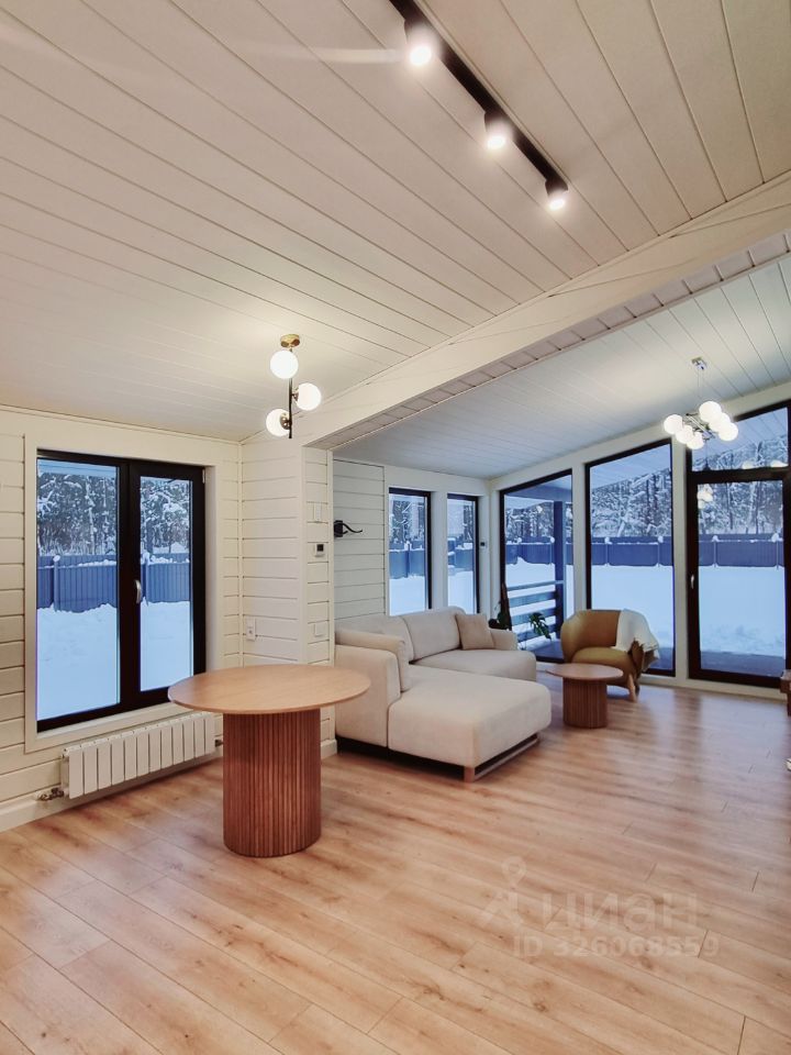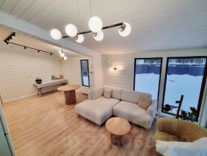 На полу ламинат 12мм, 33 класс, МДФ плинтус, имитация бруса с покраской тикурилла. Санузел частично в плитке с унитазом, ванной, раковиной, душевой кабиной и мебелью для ванной комнаты. Отопление от электрического котла + во всех помещениях, кроме бойлерной установлен теплый пол. Во всех помещениях установлены светильники, так же на фасаде дома и на террасах, розетки и выключатели, датчики теплого пола. Установлены двери, система вентиляции во всем доме.
