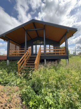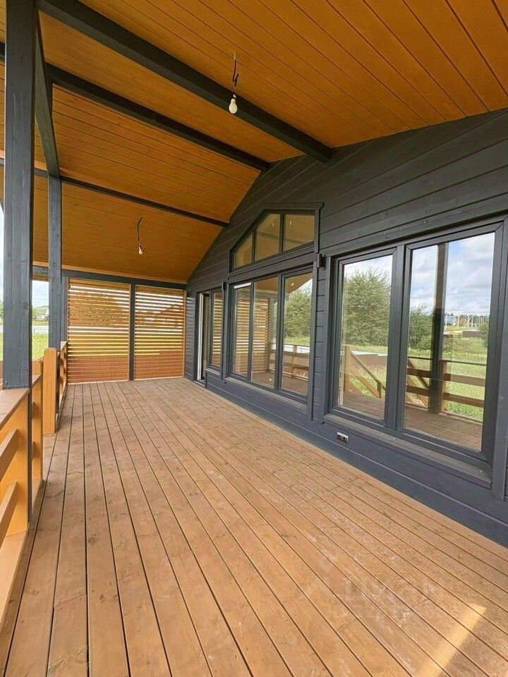 В доме две изолированные комнаты-спальни и просторная кухня-гостиная с панорамными окнами.