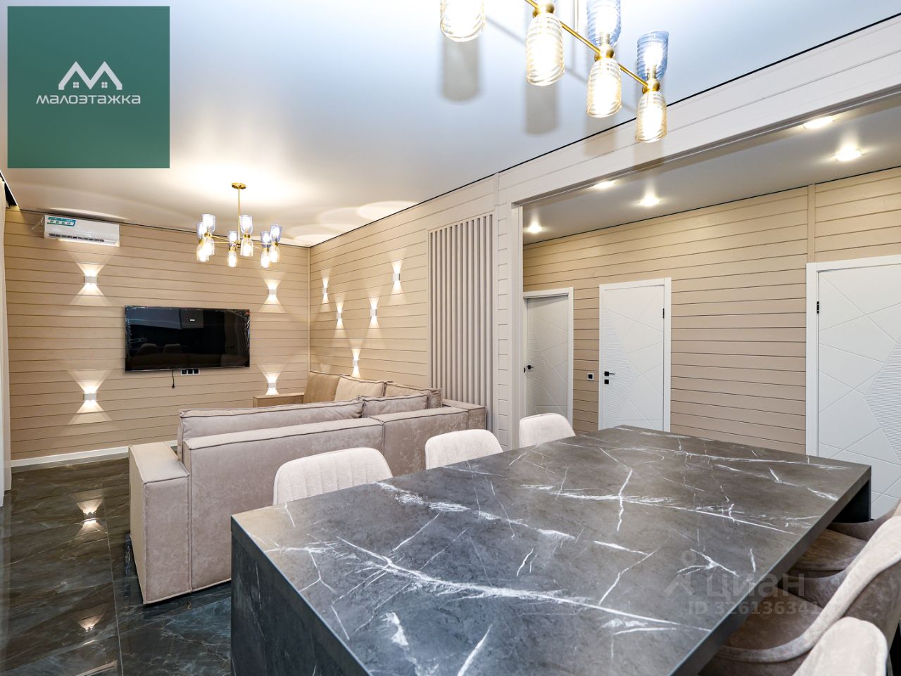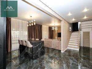 — 5 изолированных спальных комнат, гардеробная комната, 2 с/у, бойлерная, просторная кухня-гостиная с выходом на террасу, собственный выход на балкон из спален второго этажа