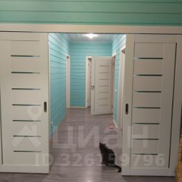 Дом каркасной конструкции на сваях, площадью 105,3 кв.м. Коммуникации: магистральный газ по границе участка (труба заведена на участок), электричество 15 кВт, водоснабжение - скважина, канализация - септик. Утепление 150. Отопление конвекторы. Пол ламинат, стены и потолок имитация бруса. Участок 6 соток, прямоугольной правильной формы.
