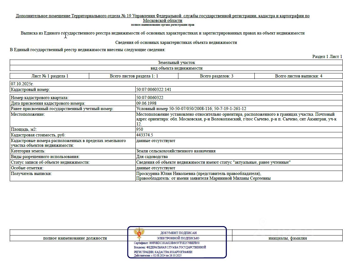 Продается доля 1/2 земельного участка по адресу: обл. Московская, р-н Волоколамский, г/пос Сычево, р-н п. Сычево, снт Акмигран, уч-к 12.