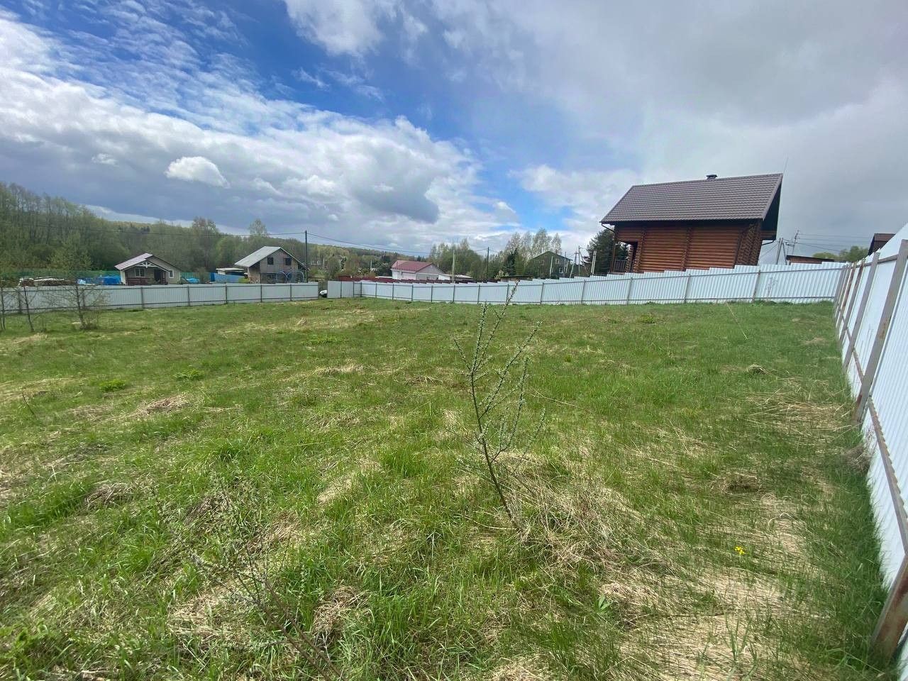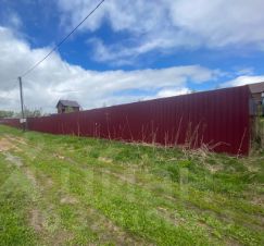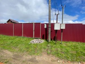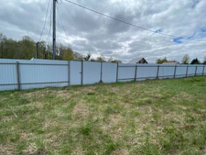 Участок совмещен, огорожен забором из профнастила со всех сторон. Место сухое, не в низине. На участке имеется несколько деревьев.